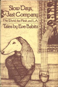 Slow Days, Fast Company, Eve Babitz. I also recommend Sex and Rage, Black Swans, L.A. Woman and Eve's Hollywood. Amazon wanted something like $250 for her Fiorucci, The Book, copied and sent in a 3 ring binder, so I haven't read that one. Yet. Her's is a world I once experienced through the eyes of a close friend. There are authors you read and you want to read more of their books and authors you read and you want to meet the author. I'd like to have met Babitz just to see her in her element. Probably just one of those icky groupie wannabe impulses. Pure fantasy. Pay no attention.