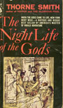 The Night Life of the Gods, Thorne Smith. I will always remember the scene where the group enters a seafood restaurant near Fulton's Fish market, a haunt of the truly dedicated seafood gourmet, and Neptune, god of the sea, spies a tank filled with lobster and immediately hauls one out, dismembers it and eats it alive. The other patrons are watching, silent, not in horror, not in amazement, but in total fascination as they realize they have discovered a new way to eat lobster, that they are in presence of a master. Loved this book. Smith also wrote Topper. Liked Topper, but I have yet to read the book. Strange. Need to do that.
